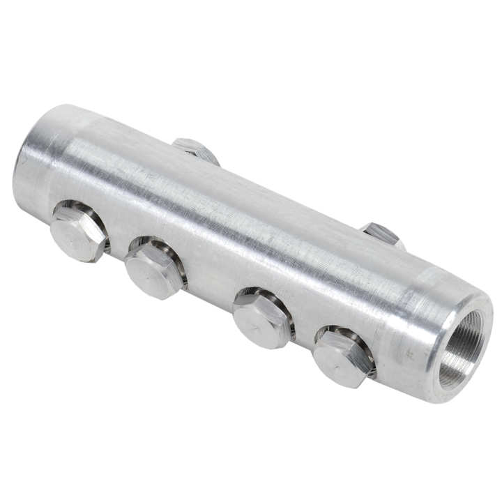 - У соединителей ГС срывные болты расположены в разных плоскостях под углом 180° друг к другу. В сравнении с расположением болтов с одной стороны, прижим кабельной жилы с разных сторон обеспечивает более надежную фиксацию проводника и увеличивает пятно электрического контакта. В зависимости от сечения жилы количество болтов варьируется от 5 до 10.