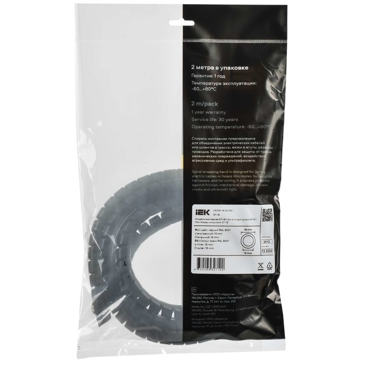 Спираль монтажная СП-16 черная (2м/упак) IEK