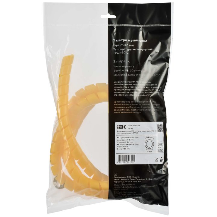 Спираль монтажная СПГ-20 желтая (2м/упак) IEK