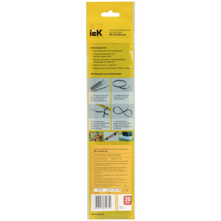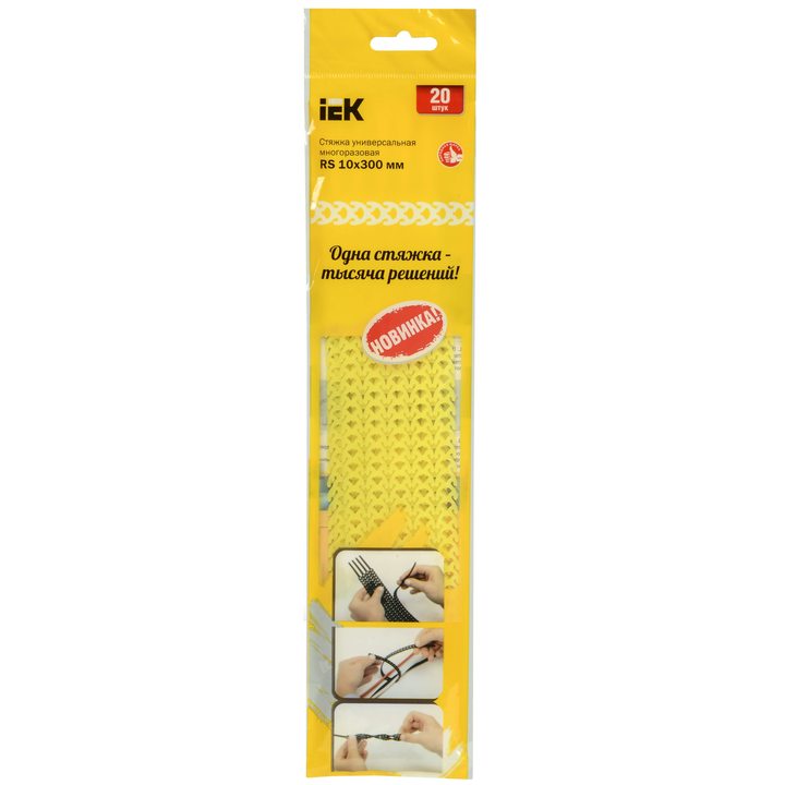 Стяжка универсальная многоразовая RS 10х300мм желтая (20шт/упак) IEK