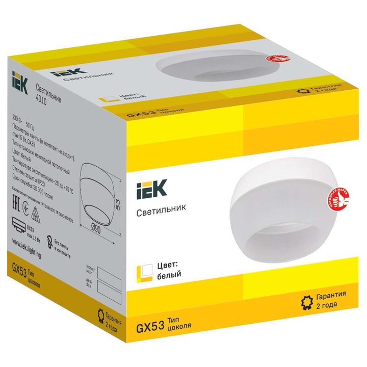 Светильник 4010 накладной потолочный под лампу GX53 бел. IEK LT-UPB0-4010-GX53-1-K01