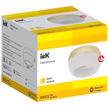 Светильник 4010 накладной потолочный под лампу GX53 золото IEK LT-UPB0-4010-GX53-1-K22