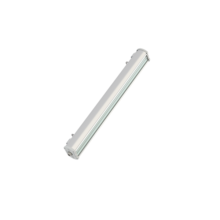 - Выполнен из экструдированного алюминиевого корпуса с литыми заглушками, что обеспечивает повышенную механическую прочность светильника.