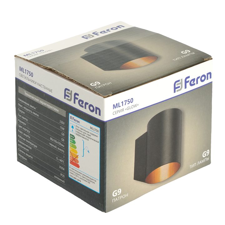 Светильник настенный Feron ML1750 Glow G9,15W, 230V чёрный + золото IP20