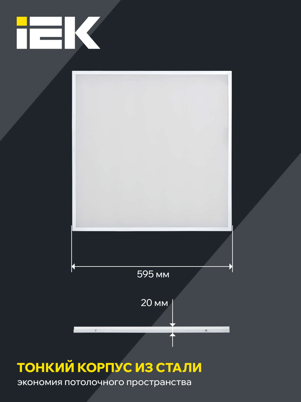 Светильник светодиодный ДВО 6572-O 45Вт 6500К 595х595х20 универс. опал. рассеив. с драйвером панель IEK LDVO3-6572-45-6500-K01