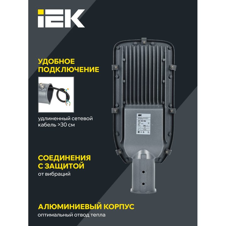 - Обтекаемая форма светильника дает высокую ветроустойчивость - меньше нагрузка на опору.