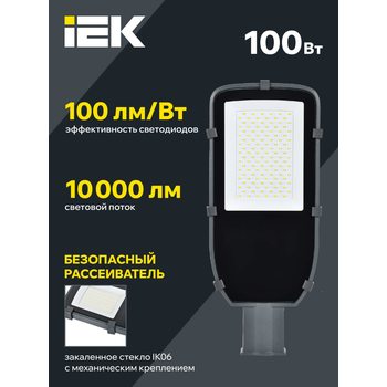 Светильник светодиодный ДКУ 1002-100Д 5000К IP65 сер. IEK LDKU0-1002-100-5000-K03