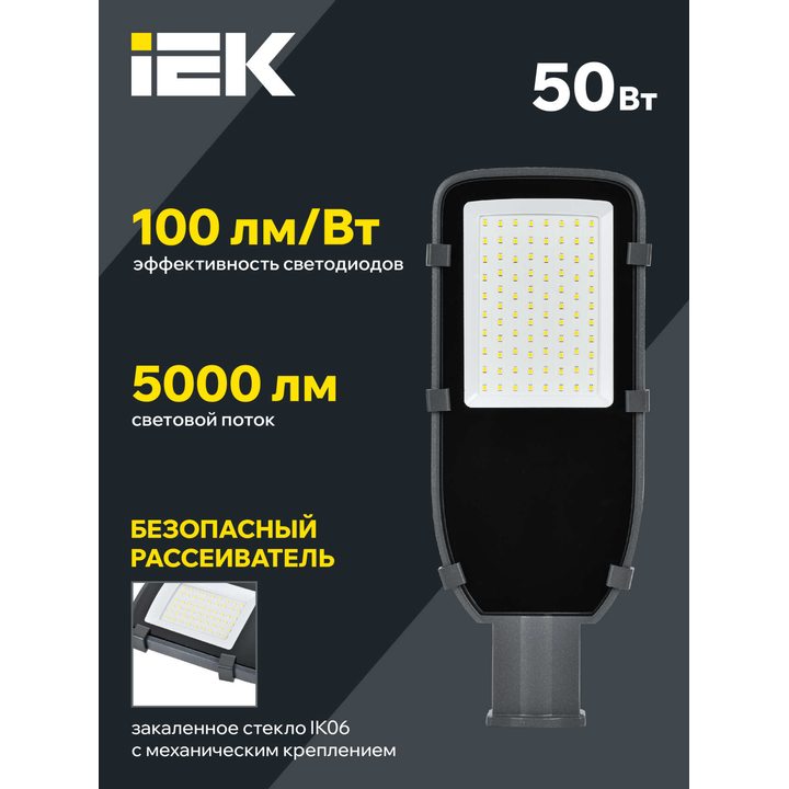 Светильник светодиодный ДКУ 1002-50Д 5000К IP65 сер. IEK LDKU0-1002-050-5000-K03