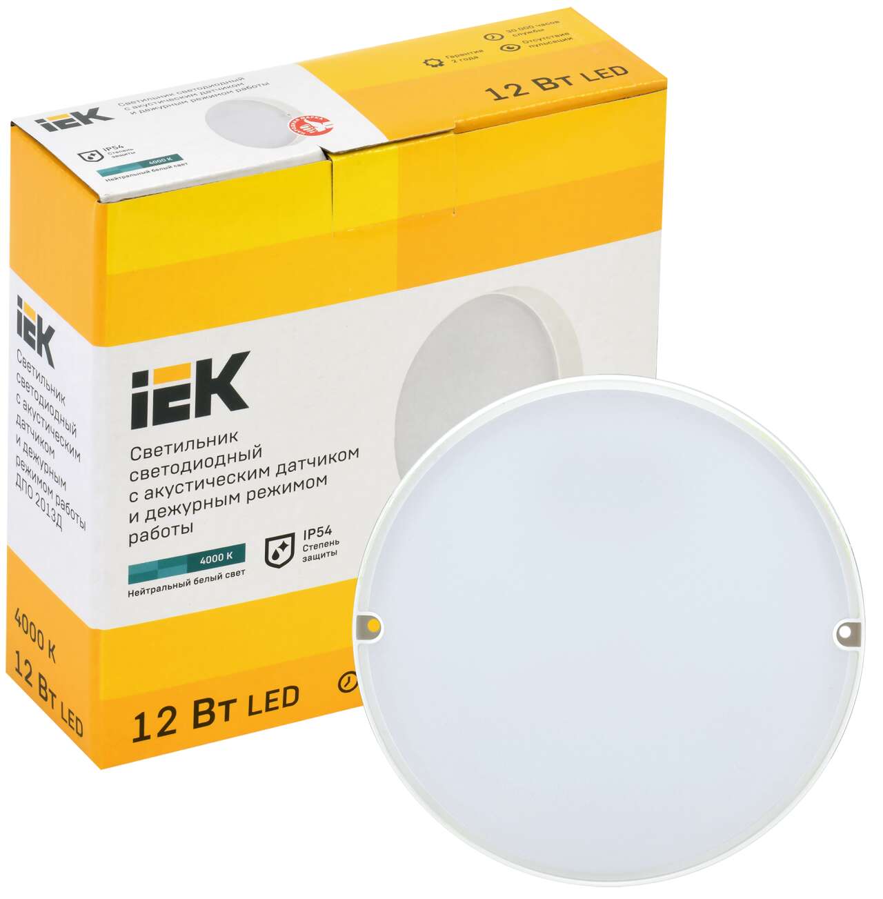 Светильник светодиодный ДПО 2013Д 12Вт IP54 4000К дежурный режим круг белый с акустическим датчиком IEK