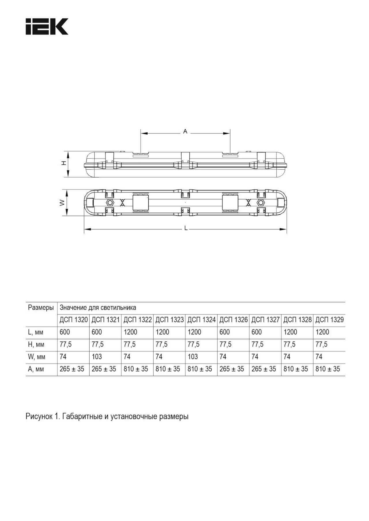 Светильник светодиодный ДСП 1327 20Вт 6500К IP65 600мм пластик серый IEK