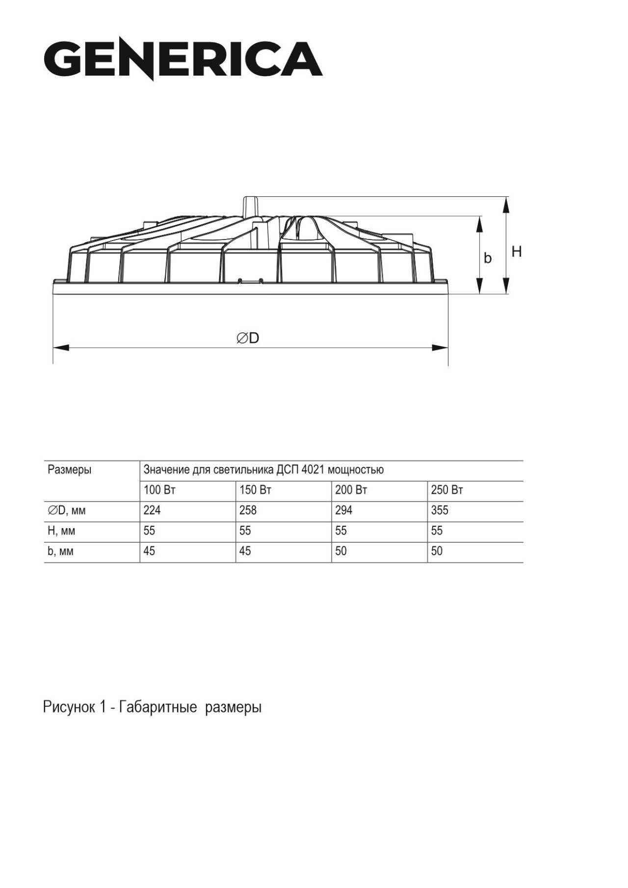 Светильник светодиодный ДСП 4021 250Вт 5000К IP65 GENERICA