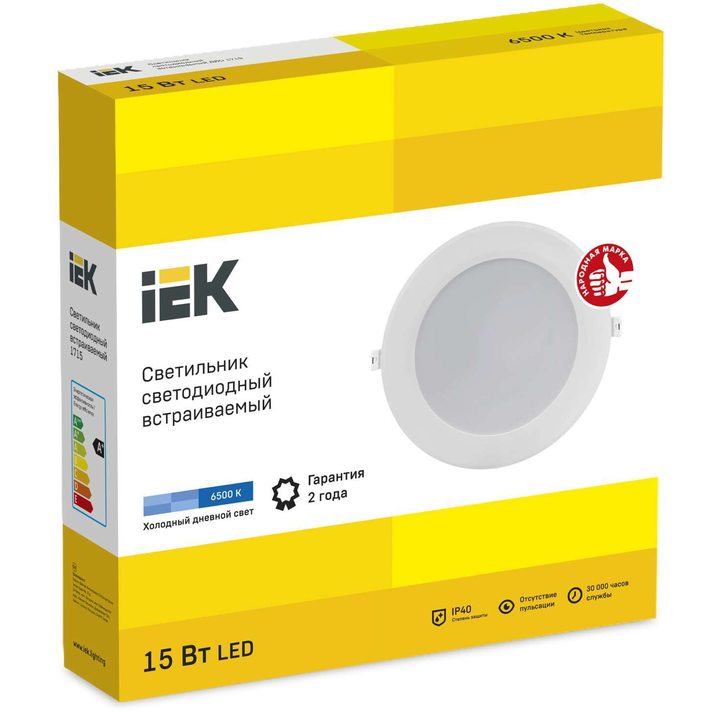 Светильник светодиодный ДВО 1715 белый круг 15Вт 6500К IP40 IEK