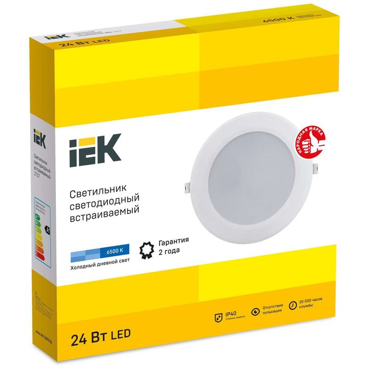 Светильник светодиодный ДВО 1717 белый круг 24Вт 6500К IP40 IEK