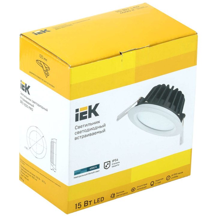 - Степень защиты светильника IP54 позволяет использовать светильник снаружи помещений под навесом.