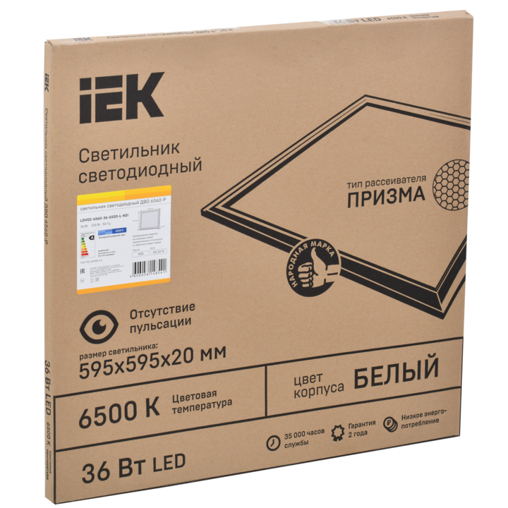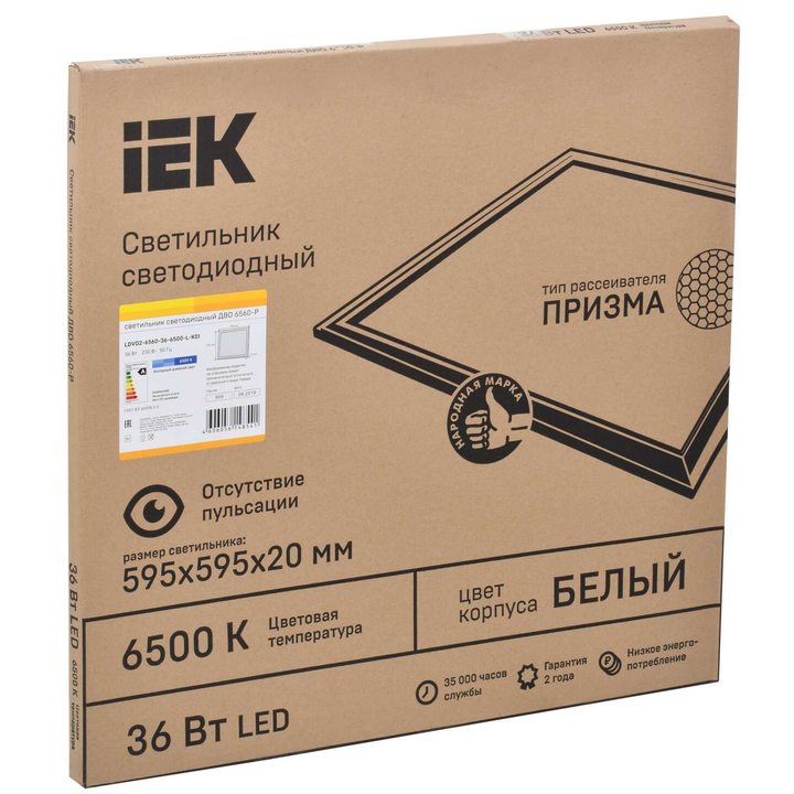 Светильник светодиодный ДВО 6560-P 36Вт 6500К 595х595х20 призма инд. упак. IEK