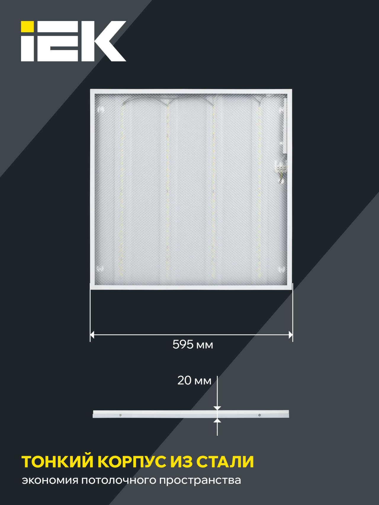 Светильник светодиодный ДВО 6573-P 24Вт 6500К 595х595х20мм призма IEK