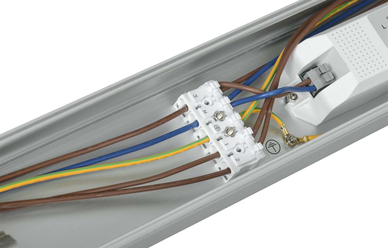 Кабельная линия с тремя группами фаз позволяет соединять до 30 светильников и осуществлять их раздельное управление. Специальная клеммная колодка не требует применения инструментов и экономит время монтажа.