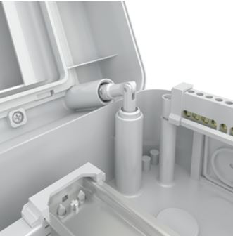 - Крышка корпуса при помощи специальных винтов-шарниров открывается без полного снятия, упрощая обслуживание щита.