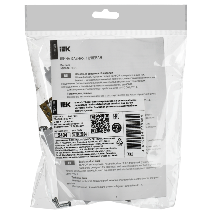 TEKFOR Шина L фаза неизолированная на универсальном держателе 6х9-16-Ср IEK