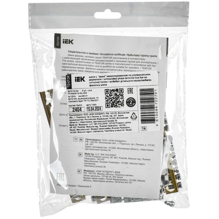 TEKFOR Шина L фаза неизолированная на универсальном держателе 8х12-14-Ср IEK