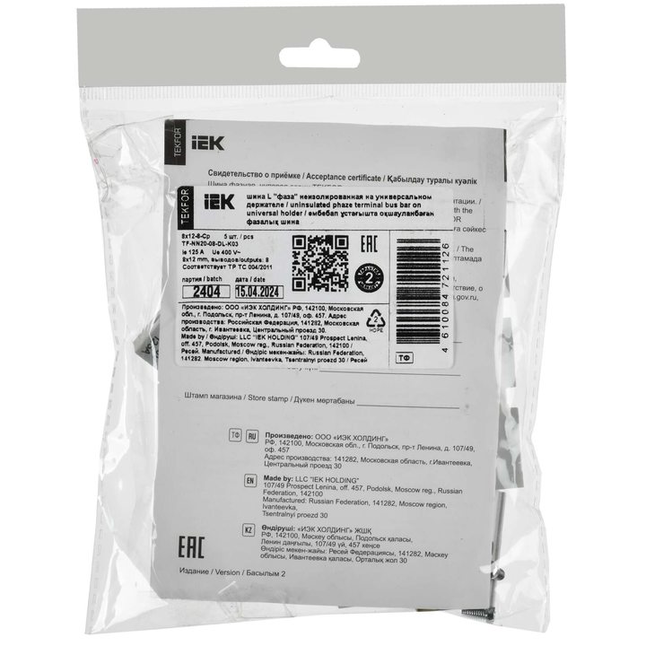 TEKFOR Шина L фаза неизолированная на универсальном держателе 8х12-8-Ср IEK