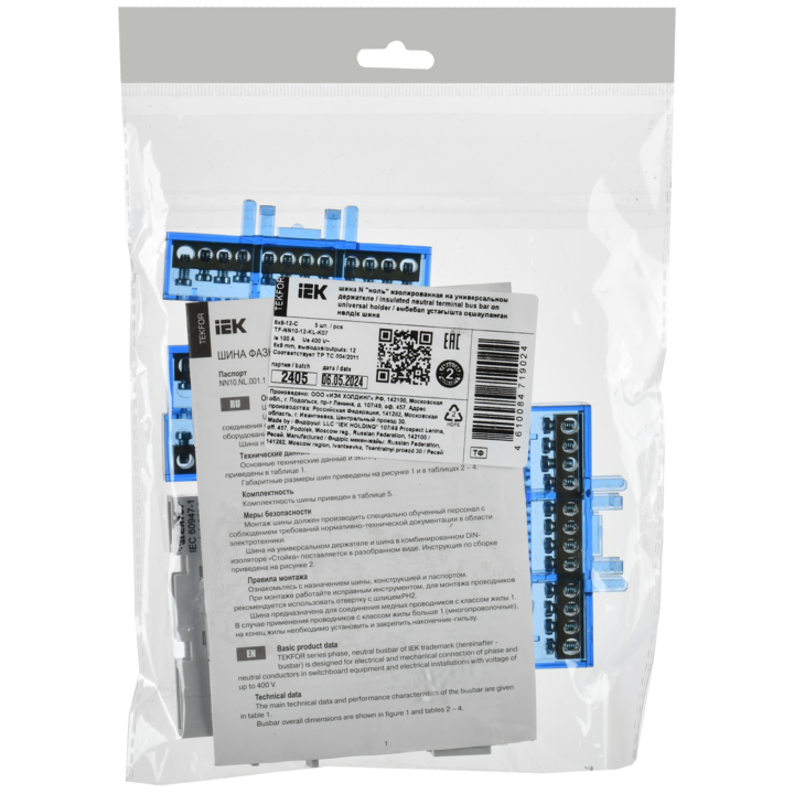 TEKFOR Шина N ноль изолированная на универсальном держателе 6х9-12-С IEK