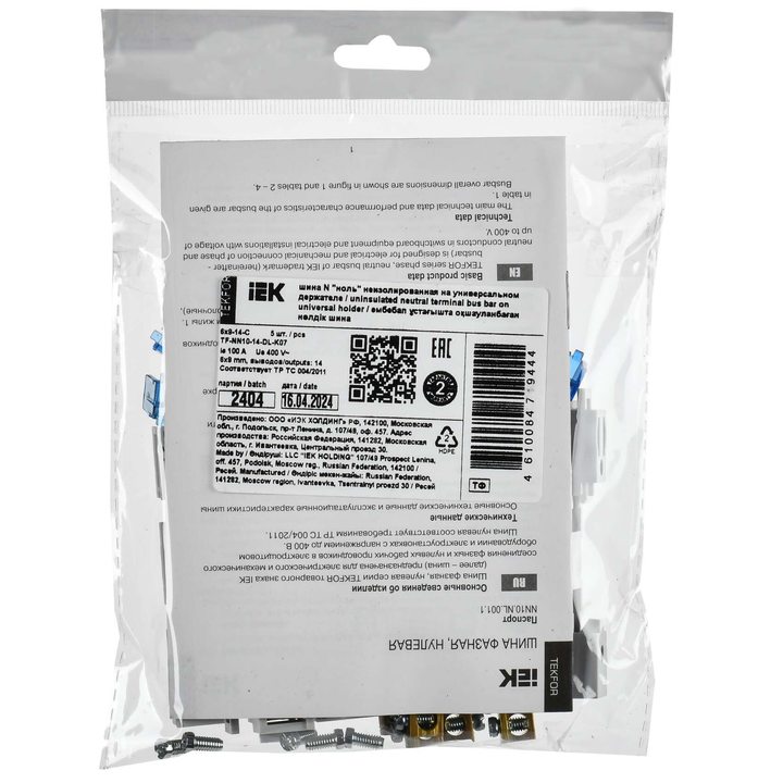 TEKFOR Шина N ноль неизолированная на универсальном держателе 6х9-14-С IEK