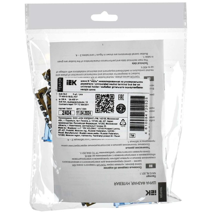 TEKFOR Шина N ноль неизолированная на универсальном держателе 6х9-18-С IEK
