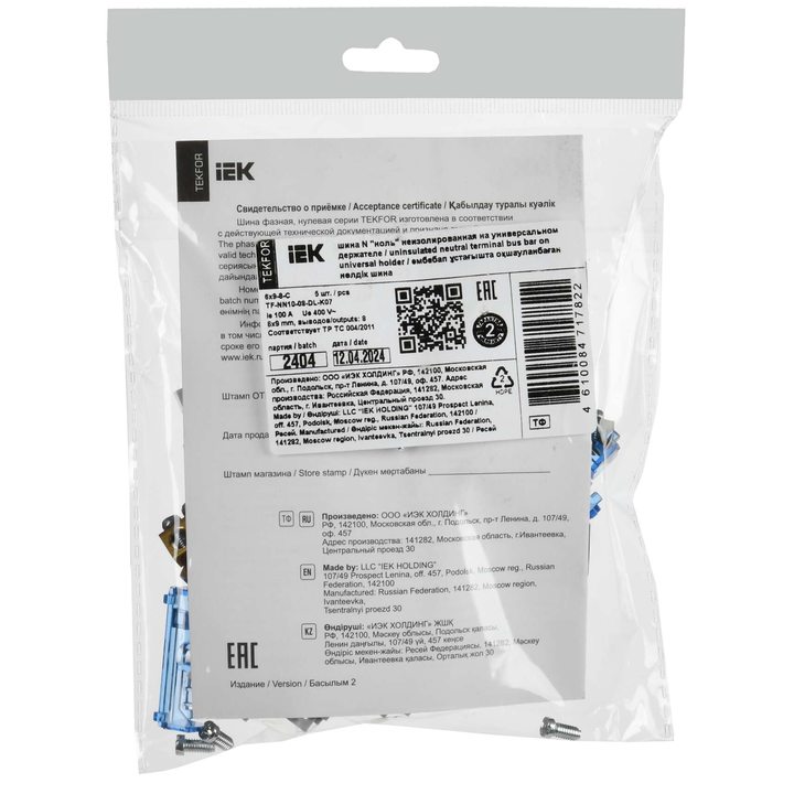 TEKFOR Шина N ноль неизолированная на универсальном держателе 6х9-8-С IEK