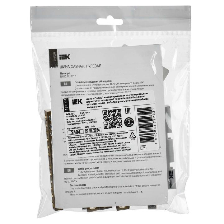 TEKFOR Шина N ноль неизолированная на универсальном держателе 8х12-12-С IEK