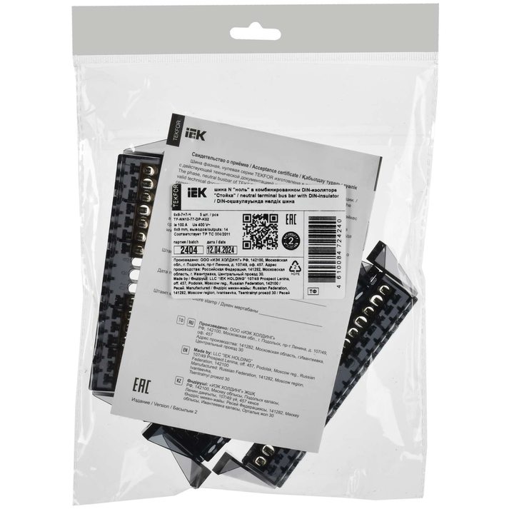 TEKFOR Шина N ноль в комбинированном DIN-изоляторе Стойка 6х9-(7+7)-Ч IEK