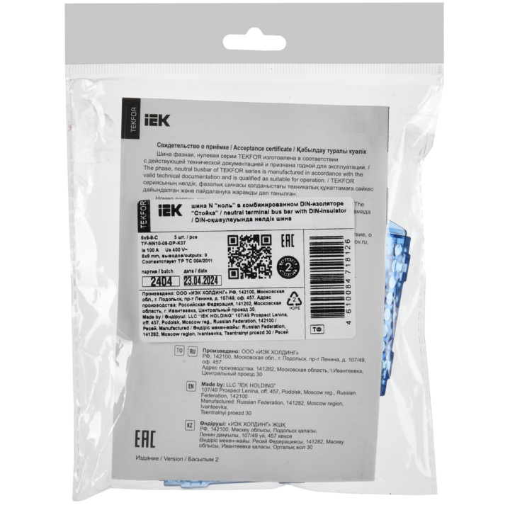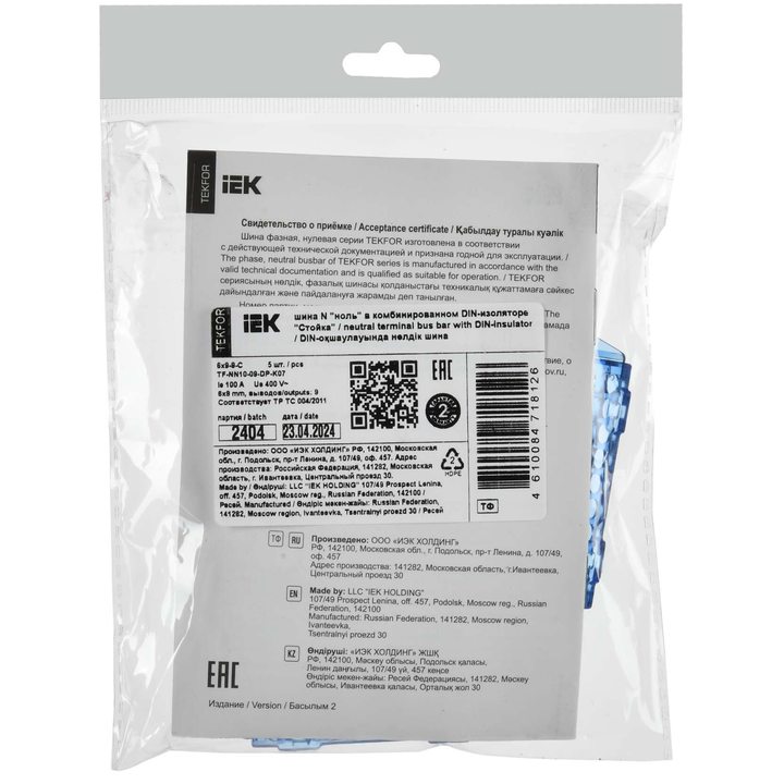 TEKFOR Шина N ноль в комбинированном DIN-изоляторе Стойка 6х9-9-С IEK