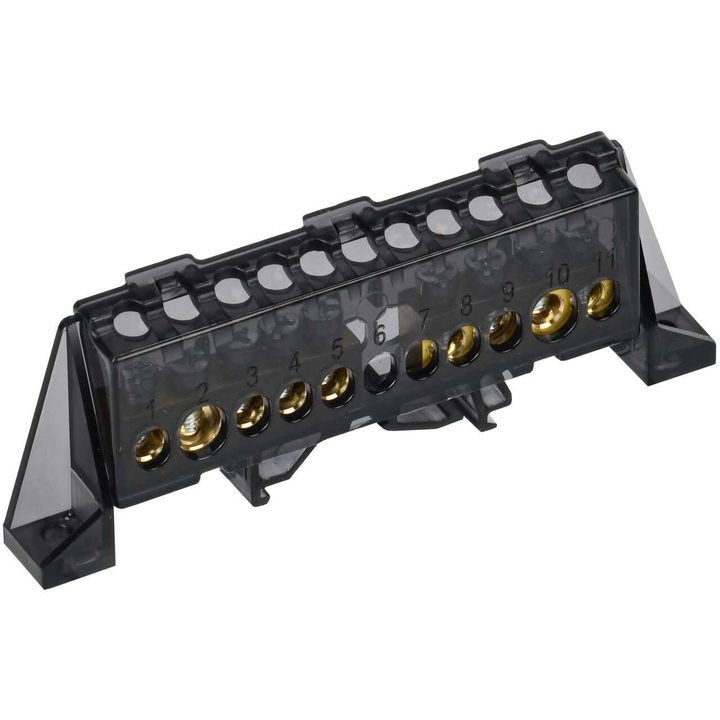 - Удобная сборно-разборная конструкция изолятора шины с возможностью подключения проводников с двух сторон.