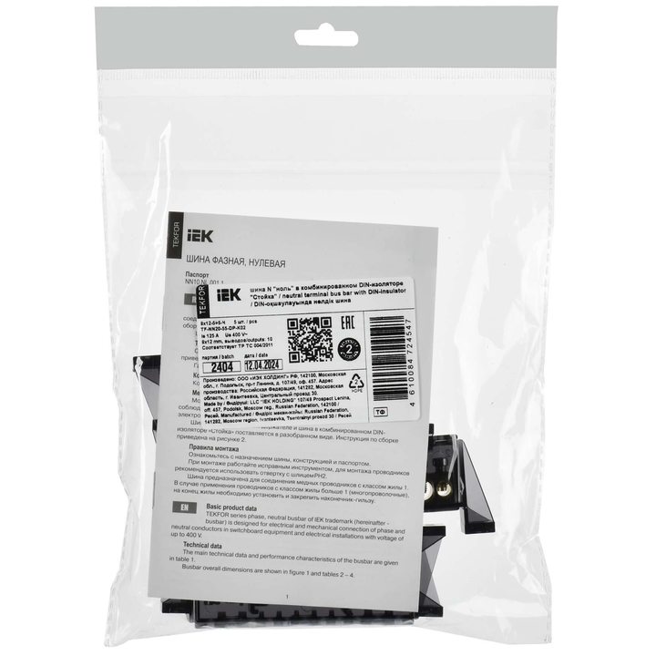 TEKFOR Шина N ноль в комбинированном DIN-изоляторе Стойка 8х12-(5+5)-Ч IEK