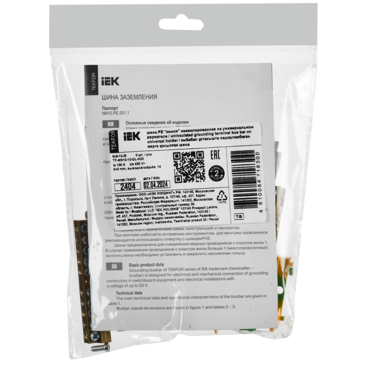 TEKFOR Шина PE земля неизолированная на универсальном держателе 6х9-10-Ж IEK