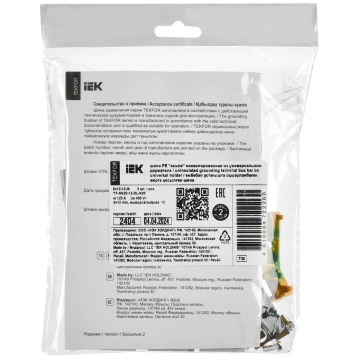 TEKFOR Шина PE земля неизолированная на универсальном держателе 8х12-12-Ж IEK