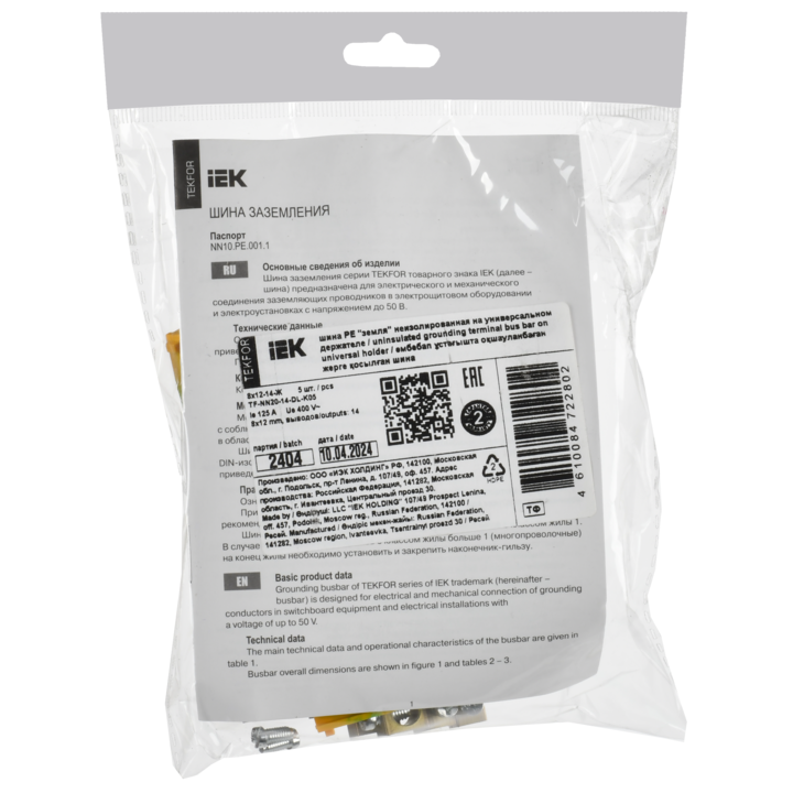 TEKFOR Шина PE земля неизолированная на универсальном держателе 8х12-14-Ж IEK