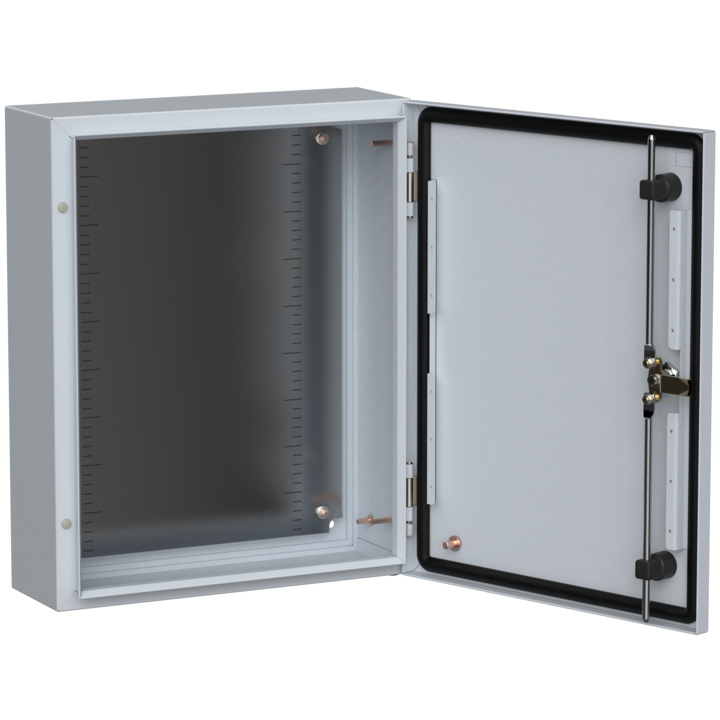 - Трехточечное запирание двери одним поворотом ключа (для корпусов высотой от 500 мм).