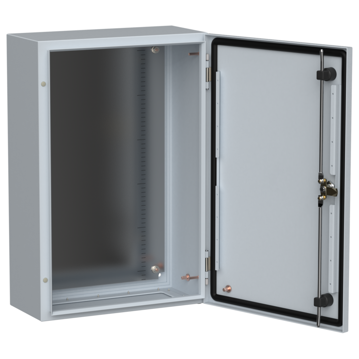 - Трехточечное запирание двери одним поворотом ключа (для корпусов высотой от 500 мм).