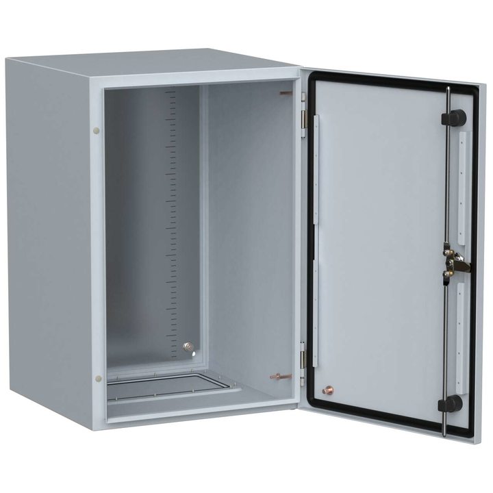 - Трехточечное запирание двери одним поворотом ключа (для корпусов высотой от 500 мм).