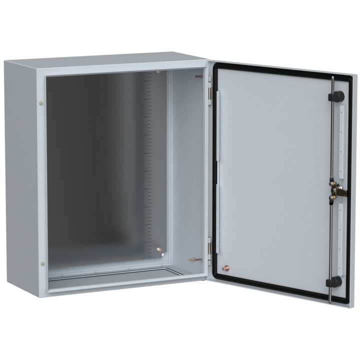 - Трехточечное запирание двери одним поворотом ключа (для корпусов высотой от 500 мм).