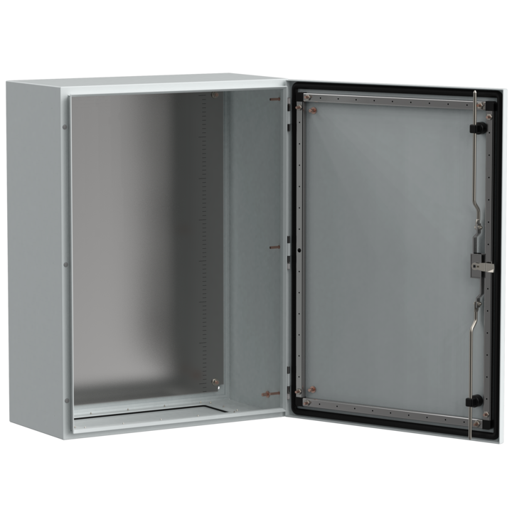 - Усиленный конструктив позволяет использовать корпус в решениях с повышенными нагрузками – оболочка и дверь изготовлены из листа 1,4 мм, монтажная панель 2 мм.