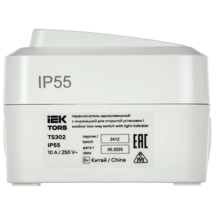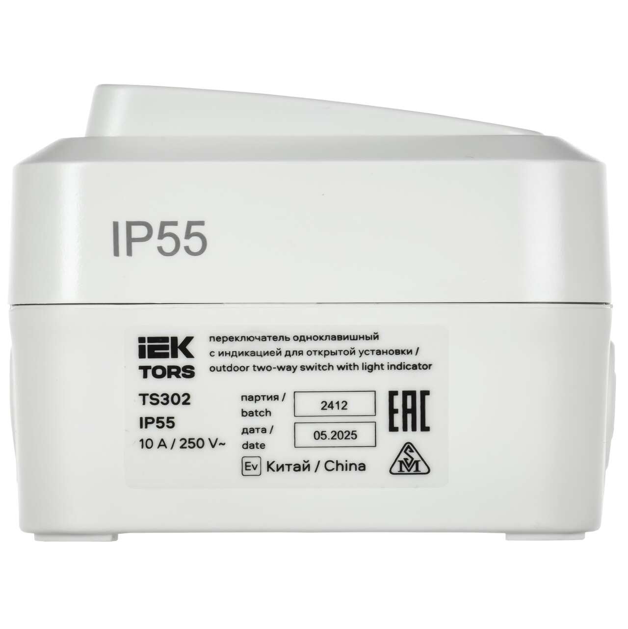 TORS Переключатель одноклавишный с индикацией 10А IP55 TS302 белый IEK