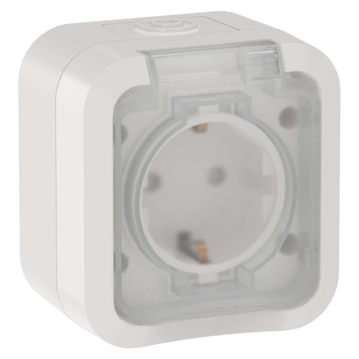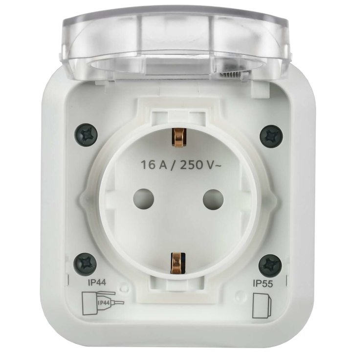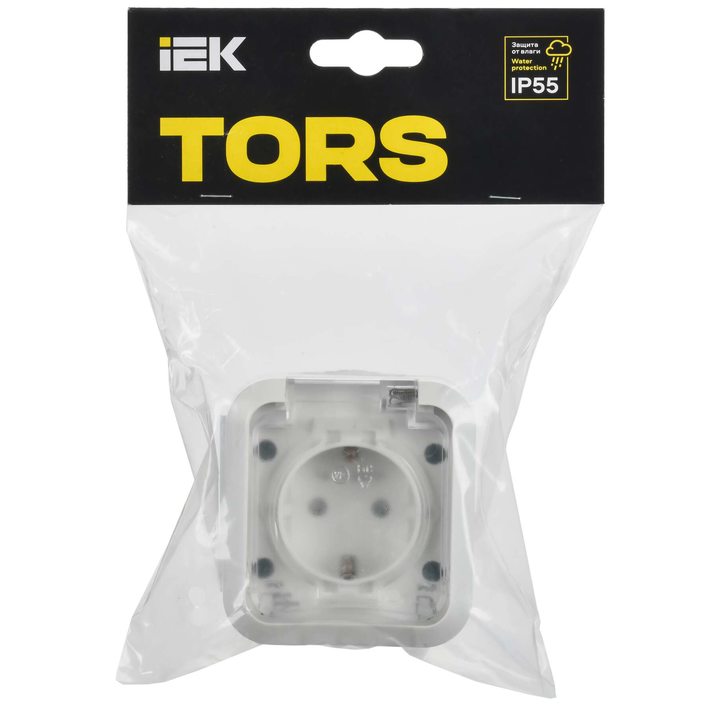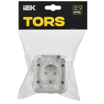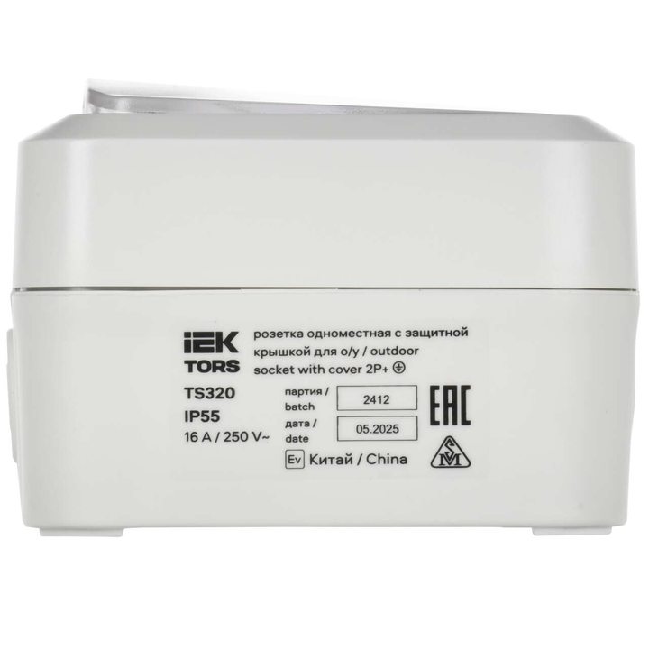 TORS Розетка 1-местная заземляющим контактом и крышкой 16А IP55 TS320 белый IEK