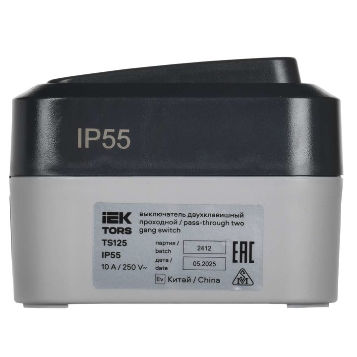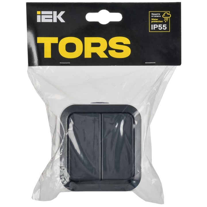 TORS Выключатель двухклавишный проходной 10А IP55 TS125 графит IEK
