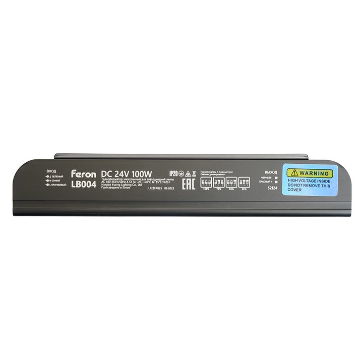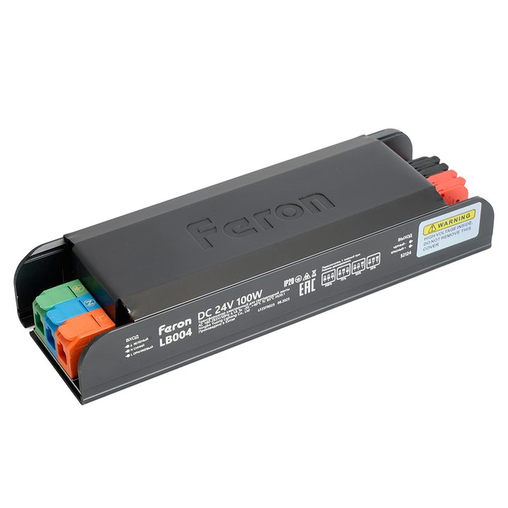 Трансформатор электронный для светодиодной ленты с плавным пуском и диммированием 100W 24V IP20, клипсы, LB004