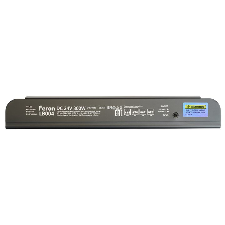 Трансформатор электронный для светодиодной ленты с плавным пуском и диммированием 300W 24V IP20, клипсы, LB004