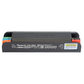 Трансформатор электронный для светодиодной ленты с плавным пуском и диммированием 60W 24V IP20, клипсы, LB004