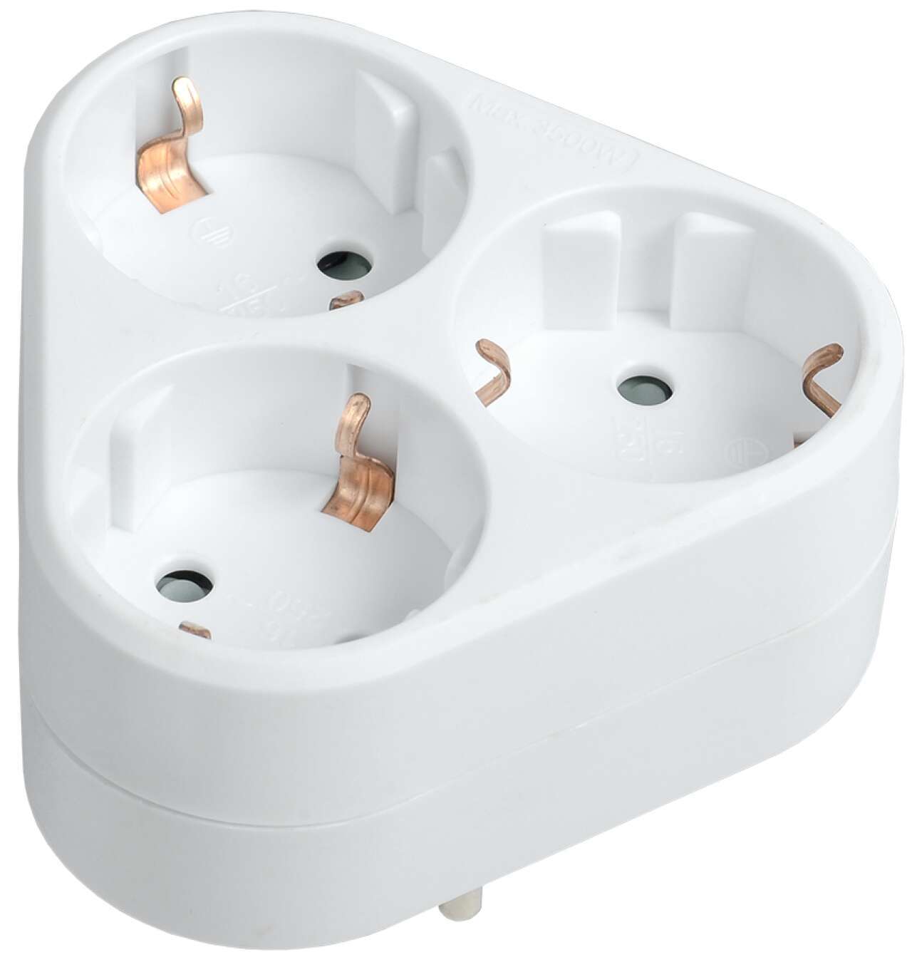 Тройник Т-01/03 3 места 2P+PE 16А треугольный бел. IEK WTP10-16-03-Z-K01