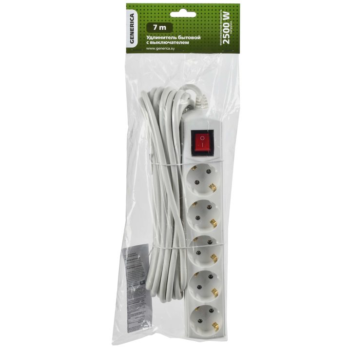 Удлинитель 5х7м с заземл. 10А 250В У05В GENERICA 2P+PE 3х1кв.мм IEK WYP10-10-05-07-ZK-G